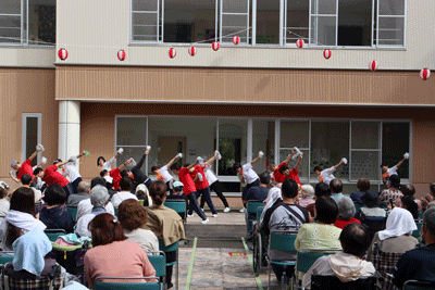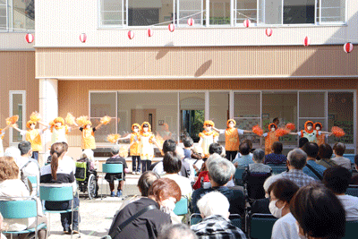 10月18日きよみ祭を開催しました。中庭では、するが看護専門学校生徒さんが「キラキラみかん体操」、職員が「UFO」、「ダンシング・ヒーロー」などの踊りを披露しました。